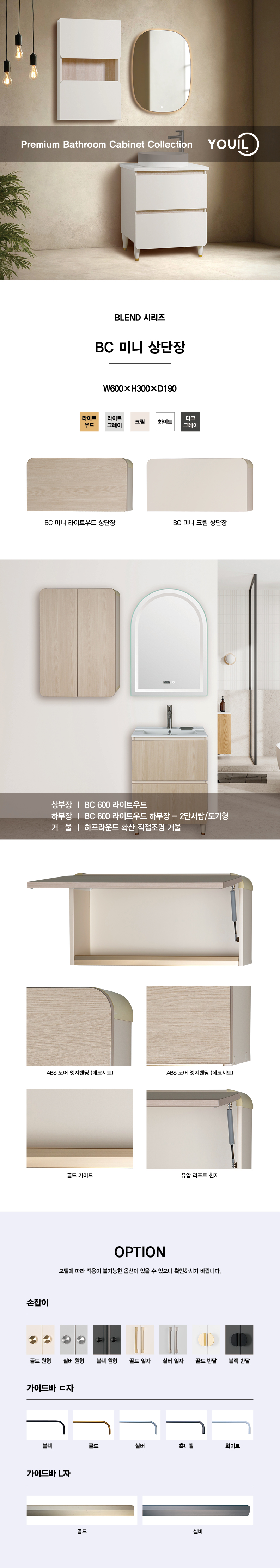 ABS 도어 엣지밴딩(데코시트), 유압 리프트 힌지, 골드/실버 가이드